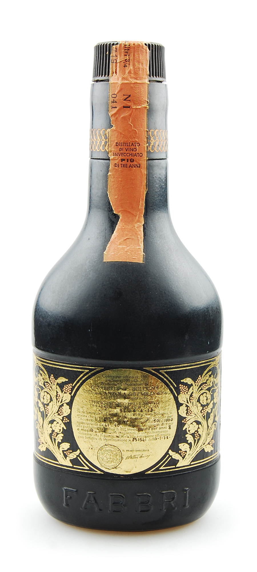 Eine eindrucksvolle Jahrgangs-Rarität Brandy distillato di vino 1969 aus dem traditionsreichen Herstellerhaus von Fabbri.