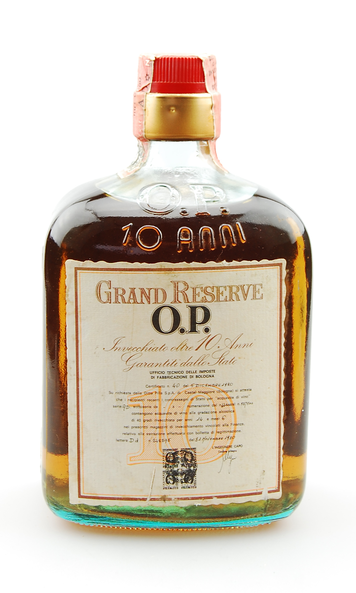 Ein grandioser Jahrgangsbrandy Grand Reserve 1980 Oro Pilla, 10 Anni, Distillato di Vino.