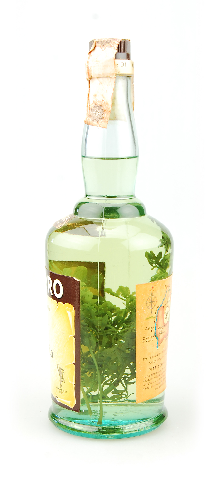 Ein sensationeller Grappa Camel Alla Ruta 1968 mit einem unvergleichlichen Geschmack der Ruta (Weinraute). Die Ruta, wird einige Minuten vor der Flaschenabfüllung in die Flasche eingeführt. Sie ist eine kleine Pflanze mit bitteren Blättern, die vor allem in den gemäßigten Zonen des Mittelmeers wächst. Die Ruta gib dem Grappa einen leicht bitteren Geschmack, mit den Aromen von zarten Kräutern und einer durchaus leichten und fruchtigen Note.